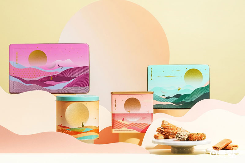 暢銷節令餅乾禮盒,換上秋節限定包裝,包含以星巴克義式咖啡粉與精選奶油層層堆疊烘烤而成的「臻選千層派禮盒」