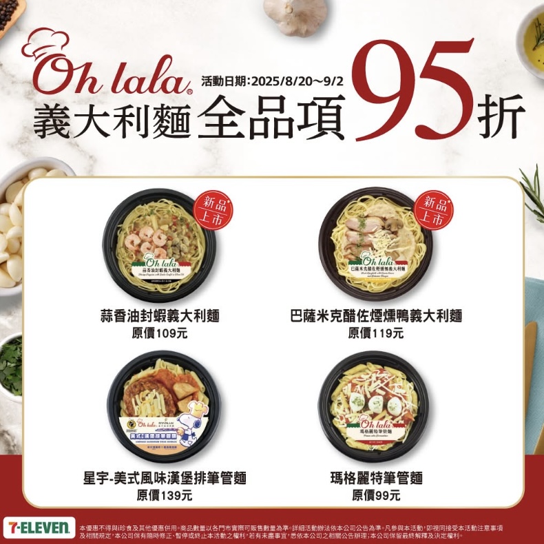 7-ELEVEN「Ohlala義大利麵嘉年華」開跑!新品登場限時95折