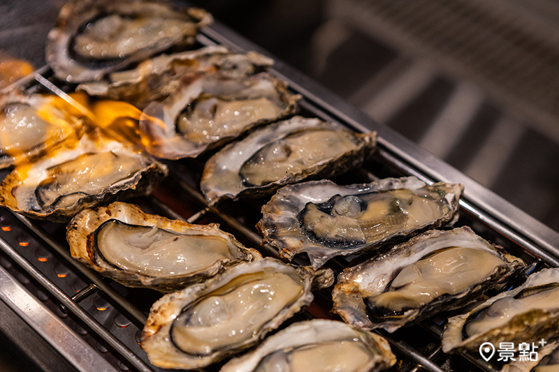 這個島檯結合食材與技藝,完美呈現高溫直火的美味,像是用琴酒噴燒的生蠔燒,透過酒香勾引出蠔肉的鮮美。