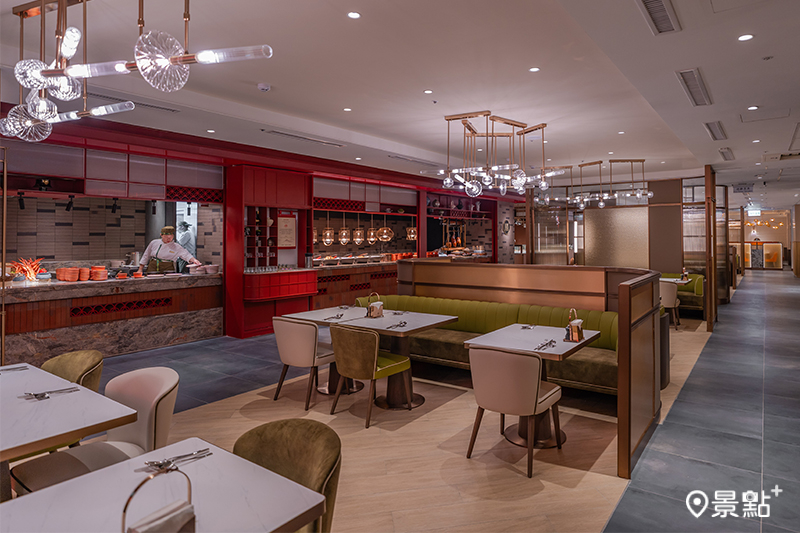 全場660坪空間僅設350席,半包廂的動線設計和取餐走道巧妙區隔座位,客人享用美食時不會受到往來取餐客人的干擾。此外,每張桌子都擺放了胡椒、海鹽等調味罐,刀、叉、湯匙也以筷架安放,加上進口品牌餐具,整體質感更加提升。