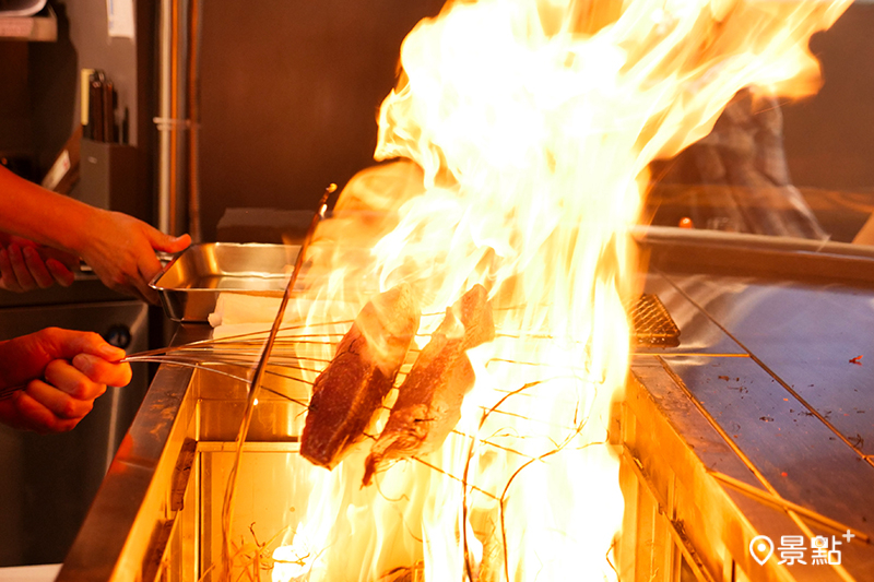 其中最具話題的是由正宗的高知職人現場以高溫稻草火焰炙燒的「炙燒鰹魚藁燒」,外皮微焦香酥、內裡依舊鮮嫩生食,搭配上店內設置的「藁燒專用燒台」現場炙燒,煙燻香氣與鮮味交織堪稱視覺與味覺的雙重演出。