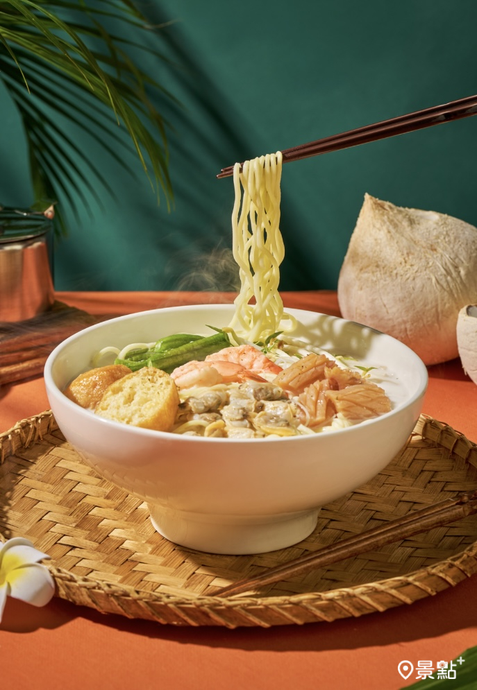 「白咖哩麵」是檳城最具代表性的美食之一,因加入了大量的椰漿而呈現乳白色湯頭而聞名,白咖哩通常較為溫和,帶有椰奶的香氣和甜味,加上混合著米粉與黃麵的多層次口感,附上的獨門辣椒醬,更為白咖哩增添了靈魂。