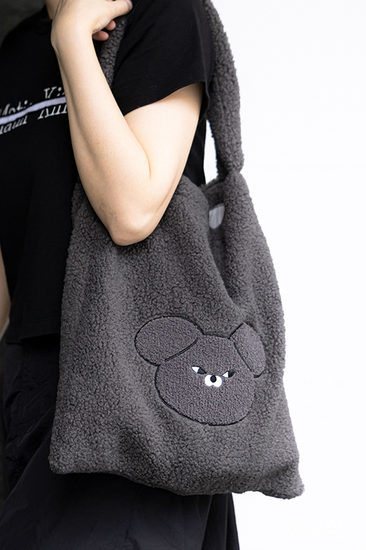 CAFE!N WASABI BEAR HOBO BAG毛茸茸化身時髦好裝流浪包!絨毛材質,軟萌又耐裝,灰黑設計百搭好看,背出門就像隨身帶著 WASABI BEAR 一起 CHIIL!
