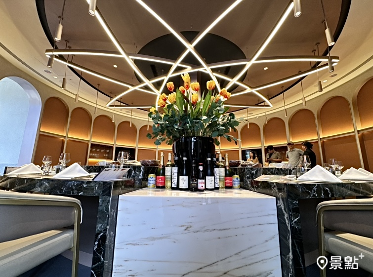 《Le Jardin 夏登法式鐵板燒》座落在七期靜巷的一棟歐風獨棟宅邸,外圍是一座自植香草花園,百里香、薄荷、迷迭香隨季綻放。走進夏登迎面而來是新鮮花束,兩側半圓形鐵板燒餐檯,可容納22至24人。