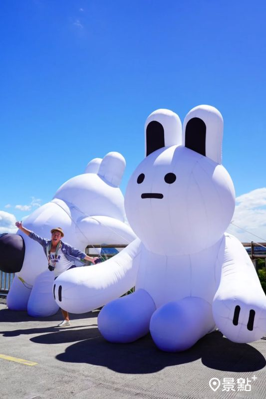 巨型兔兔Q降落大橋場景拍起來太可愛!創作「雲朵阿Q」的藝術家Alan Hong,於新月橋周邊打造超過4米的「兔兔Q」氣偶裝置,旅人不僅能在白天捕捉藍天同框畫面,還能在夜晚捕捉光雕美景,快將3大美拍亮點筆記起來,把握展期前往打卡!