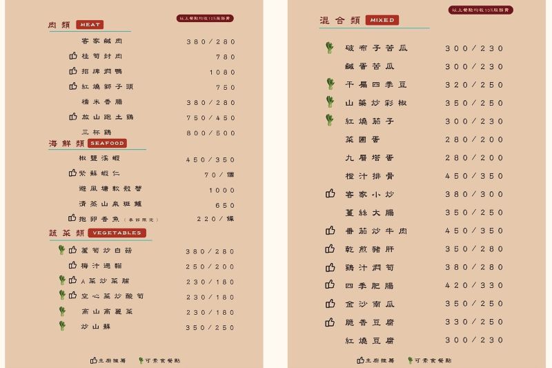 店內販售5500元至9500元的合菜品項,適合家庭旅遊踩點或多人聚餐,其中皆包含必吃餐點「招牌燜鴨」,建議想於假日造訪的旅人,提前向店家預約及點菜。