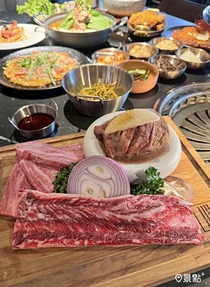 除了燒肉,有別於傳統單一品項韓國餐廳,主廚希望把每道精髓帶來台中,三款傳統鍋物如:馬鈴薯排骨湯、部隊鍋與大醬湯,向韓國家庭餐桌致敬,同時融合台灣火鍋文化的共享精神,韓式料理副食的選擇相當豐富、選擇多元!