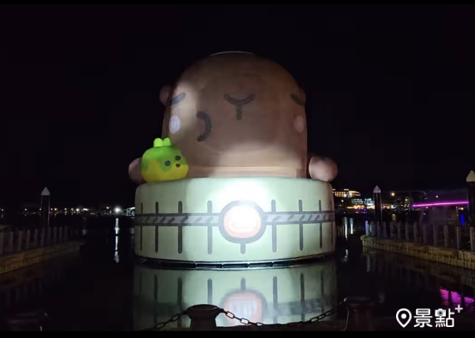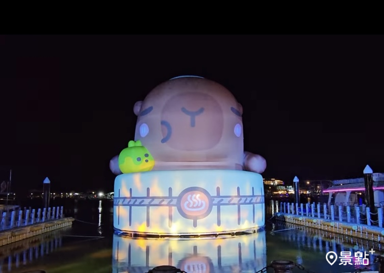 這次活動最大亮點,莫過於為此次活動全新設計、首次登陸安平漁人碼頭的12米高的「卡比胖拉」水上氣偶,以經典慵懶泡湯造型現身,手抱在地特產「青皮椪柑」,搭配周邊水域環境,營造出療癒人心的可愛氛圍。