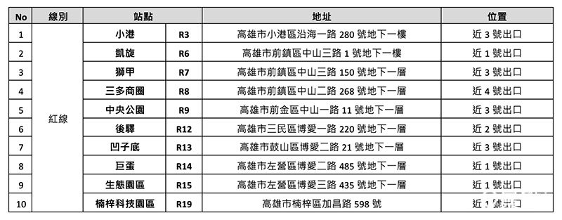 亞尼克高雄捷運 YTM 10站點