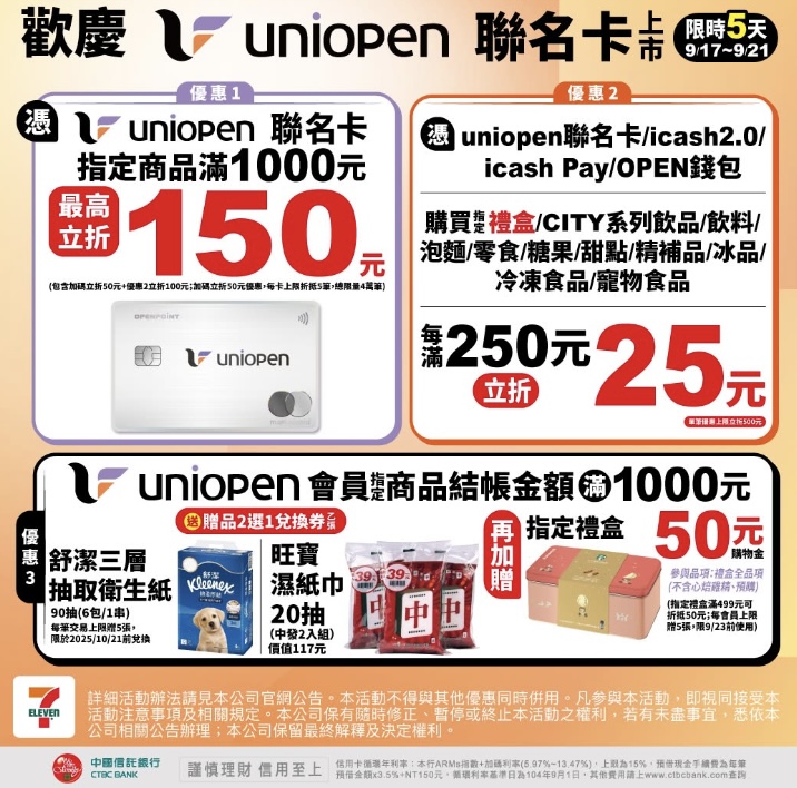 歡慶 uniopen 聯名卡上市 5天限定優惠