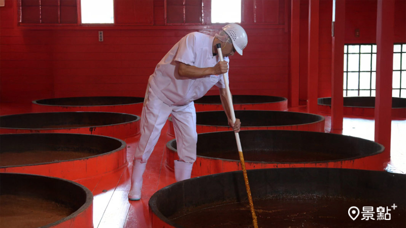 其中的御用藏生醬油更是稀罕珍品,一年僅限量釀造一次,所以只能限量販售,因此目前在台灣採限量預購制。它採行二段熟成,第二段釀造不用一般食鹽水,而是直接以發酵成熟的生醬油回釀,再選在嚴寒時節進行「寒仕込み」(冬釀)。透過低溫讓發酵與熟成放慢腳步,風味因而更緊實、更深長,宛如把冬日空氣也一併鎖進醬油裡。這種做法在高級的日本酒、味噌中也可發現。