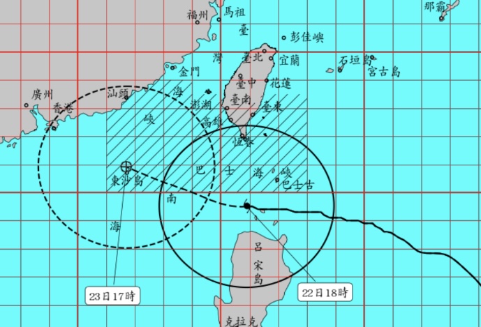 海上警戒:臺灣海峽、臺灣東南部海面、巴士海峽、東沙島海面航行及作業船隻應嚴加戒備。