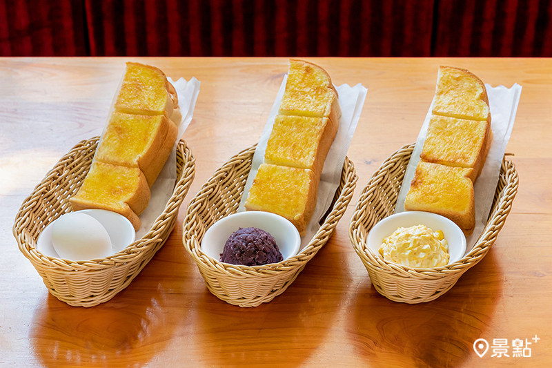 延續名古屋「買飲品送早餐」的特色,每日早上11:00前,在淡水捷運店只要點購任一飲品,就能享有早餐三選一:柔軟酥脆的吐司塗上奶油或草莓果醬,再搭配紅豆泥、雞蛋沙拉、水煮蛋三選一。