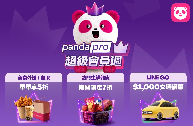 foodpanda 宣布即日起至 10 月 10 日推出「超級會員週」,pandapro 優惠火力全面升級!限時 10 天無限次美食外送 5 折、生鮮雜貨 7 折等多重優惠一次到位,不論是早午晚餐還是手搖飲都能大口吃喝、半價爽快!除了超級會員週限定優惠,foodpanda 更攜手 LINE GO 提供 pandapro 獨家優惠,最高可領取 4,900 元交通金,讓大家日常「吃喝走跳」都能爽爽省,更能即刻開啟一站式數位生活圈。