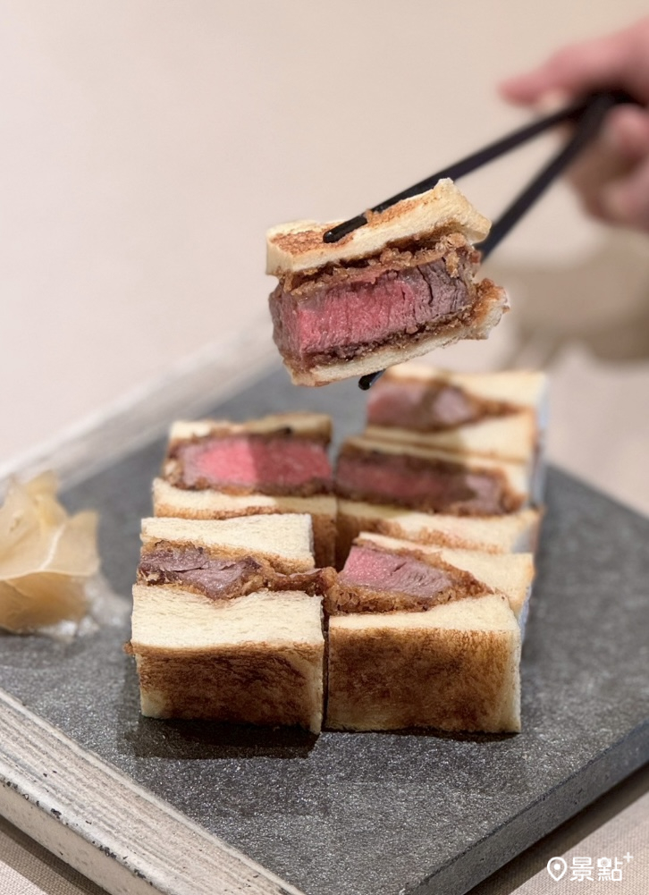 套餐料理外,料理長更因熱愛餐酒搭配,精心設計單點與佐酒佳餚,為饗宴增添更多選擇。「A5和牛三明治」選用鹿兒島冠軍和牛「小田和牛」裹粉炸至金黃酥香,肉質軟嫩多汁夾入烘烤後的麵包並佐以特製醬料,口感濃郁飽滿。