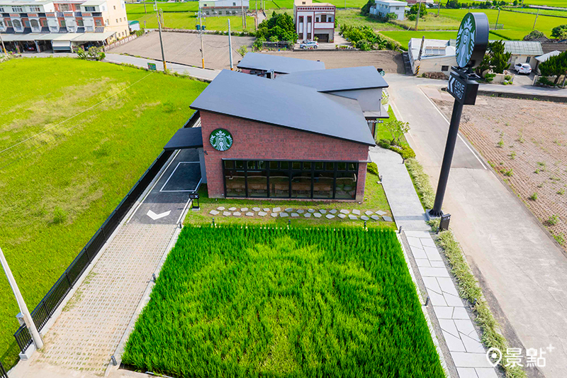 星巴克苑裡稻香門市將Logo巧妙化為「稻田彩繪」。(圖/星巴克,以下同)