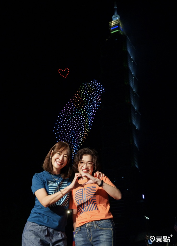 台北101董事長賈永婕與台新新光金控總經理林維俊親臨現場,與民眾一同仰望夜空,共同見證這場屬於臺灣的榮耀時刻。