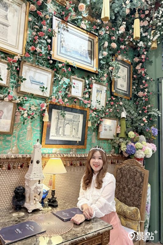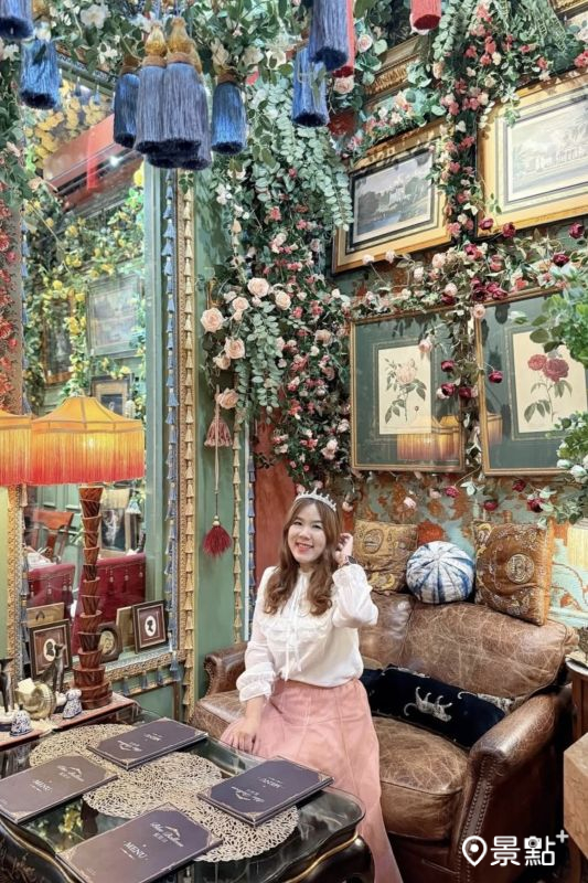 取景時可使用仰拍角度,捕捉布滿花景的天花板及燈飾;或是在座位上拍攝以多種畫框為背景、充滿異國風情的人像美照;還能運用鏡子擺設,一次取景前後環繞空間。
