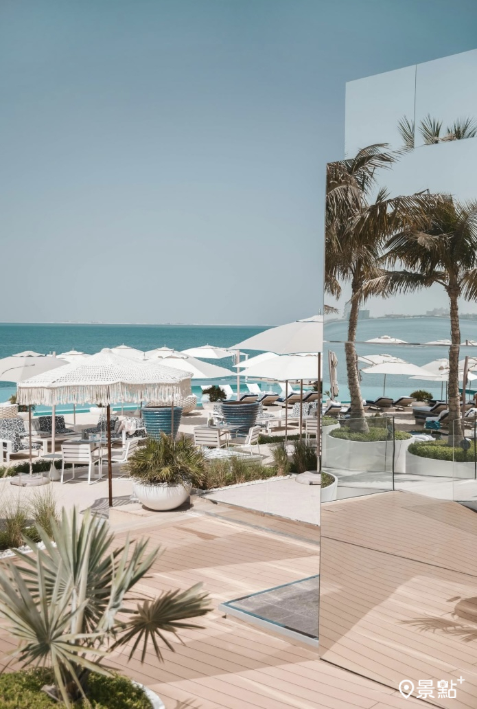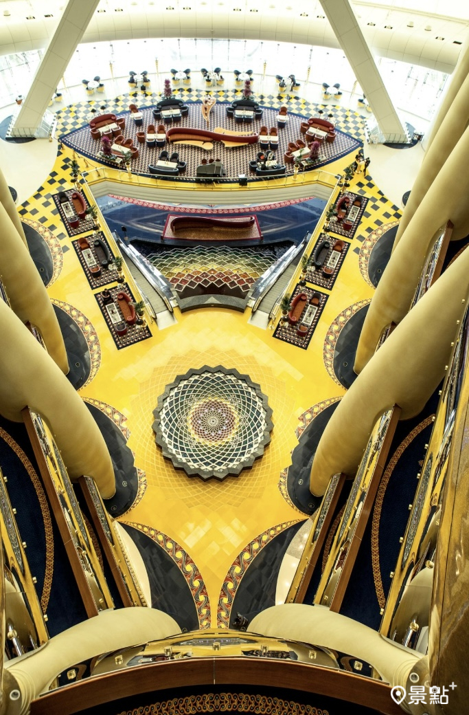 內部以金箔、馬賽克與高挑穹頂營造出宮殿般的壯麗氛圍。劇中鏡頭穿梭於其金色長廊與湛藍海景之間,象徵主角命運的交錯,也折射出杜拜「現代奇蹟之城」的耀眼形象。