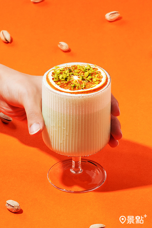 不嗜酒的賓客另可選擇無酒精調飲「CHA & NUT」,英式早餐茶搭配燕麥奶、榛果糖漿與蜂蜜,藉由溫潤奶茶佐餐,襯托開心果的迷人細緻。