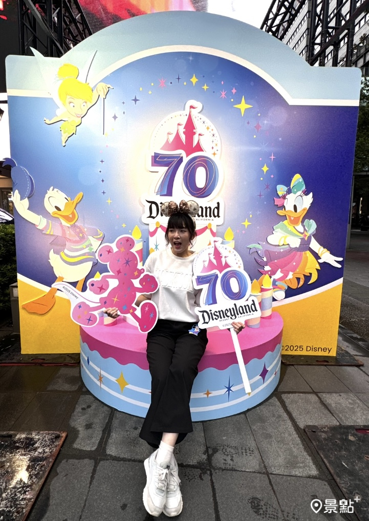 2.慶生蛋糕區:巨型的立體70週年蛋糕登場,設計還有唐老鴨、黛西與《小飛俠》裡的小叮噹齊聚,陪粉絲一起歡慶生日派對!