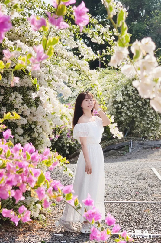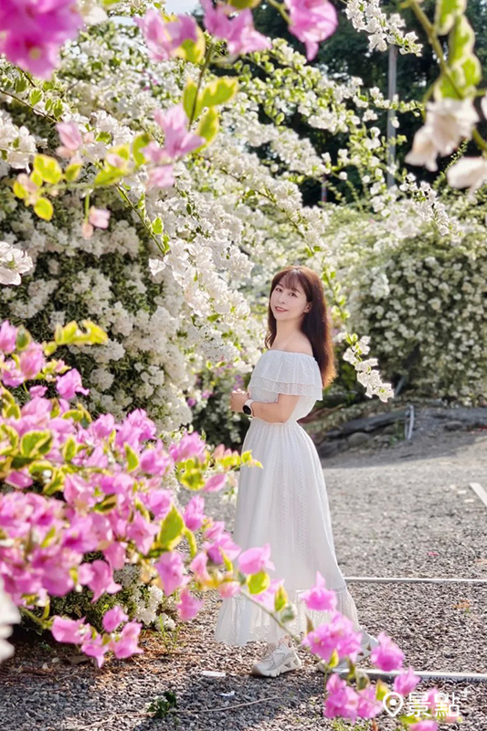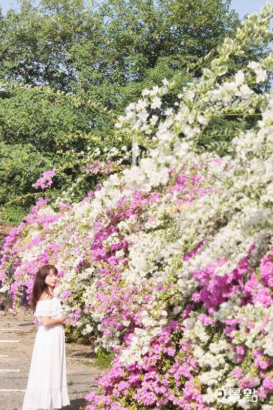 滿版粉白雙色九重葛花海瀑布美炸!免費賞花秘境最佳取景時段美拍範本