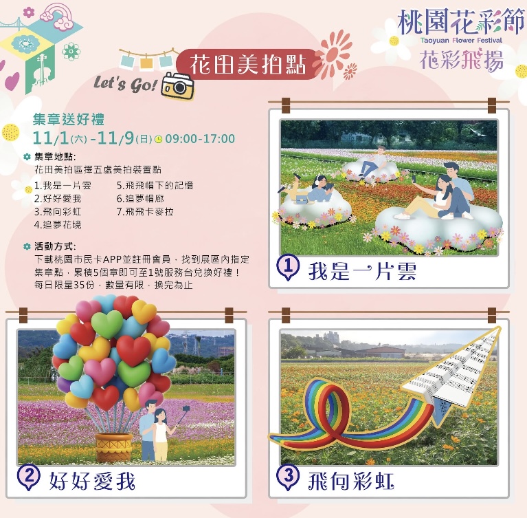 「2025桃園花彩節・花彩飛揚」11月1日登場,活動進行到11月9日,原訂活動共9日,不過因為受到天候影響,花開較慢,因此主辦單位宣布11月9日閉幕不閉園,展期持續並開園至11月16日。(更新:因應鳳凰颱風來襲,活動已提早於11月10日結束、撤場)