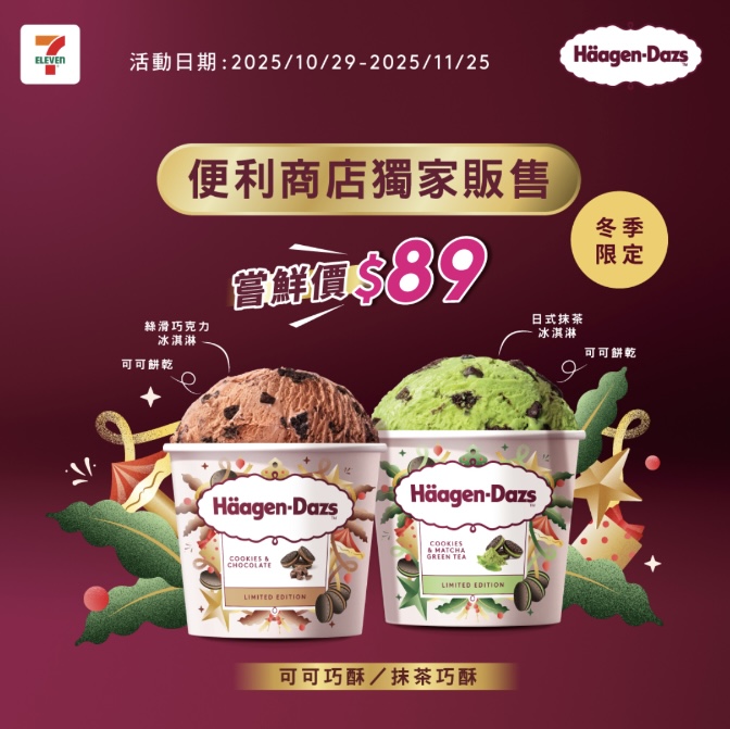 2.超商獨家新品哈根達斯可可巧酥冰淇淋迷你杯、抹茶巧酥冰淇淋迷你杯新品嘗鮮價89元