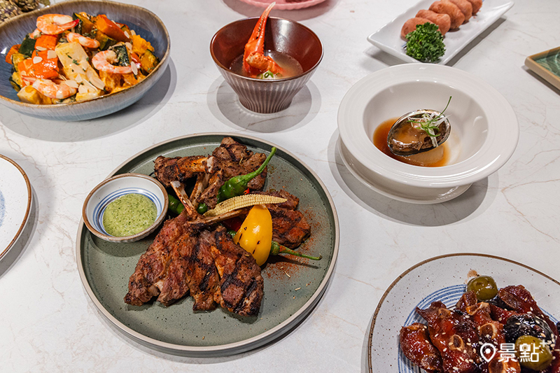 首先以〈炭烤羊肩排佐阿根廷青醬〉嚴選厚實羊肩排,以新鮮迷迭香與特製調味粉醃製四小時,再以炭火高溫炙烤五至七分熟,鎖住肉汁與香氣,佐上以香菜為基底的阿根廷青醬,濃郁草本氣息與紮實的羊肉完美契合,肉汁與青醬的美味縈繞在嘴邊。