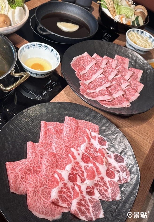 1.「日本和牛」($1,380元):以F1和牛前胸肉、內腿頭刀、外腿三叉和鯉魚管等部位為主,脂肪含量沒那麼高,口感彈性中不失細嫩