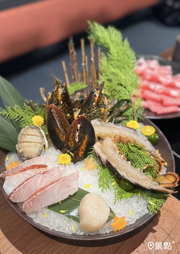 1.海陸雙拼鍋 ($1,580元): 由伊比利豬搭配南非鮑魚、北海道生食級干貝和季節鮮魚。