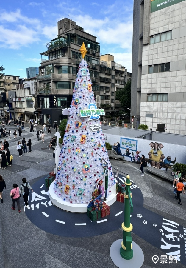 中山站4號出口旁頓時充滿聖誕氛圍,來往人群莫不停下腳步與聖誕樹、動物方城市人物合影拍照,這是台北市區戶外首棵聖誕樹,讓民眾相當興奮!