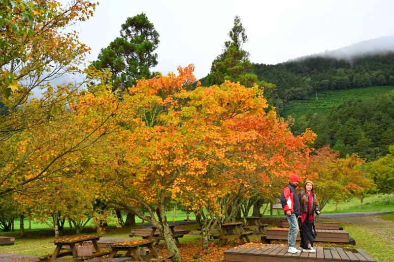 於2025年11月初午後拍攝的武陵農場露營區A1區楓葉美景。
