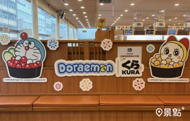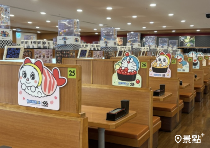 除了超多款扭蛋外,藏壽司這次更直接把哆啦 A 夢搬進店裡啦!限定「板橋遠科店」、「基隆中正信三店」、「台北館前店」、「台中惠文路店」及「高雄岡山店」五家店鋪,將從門貼、等候區到櫃檯區,全都換上哆啦 A 夢限定佈置。