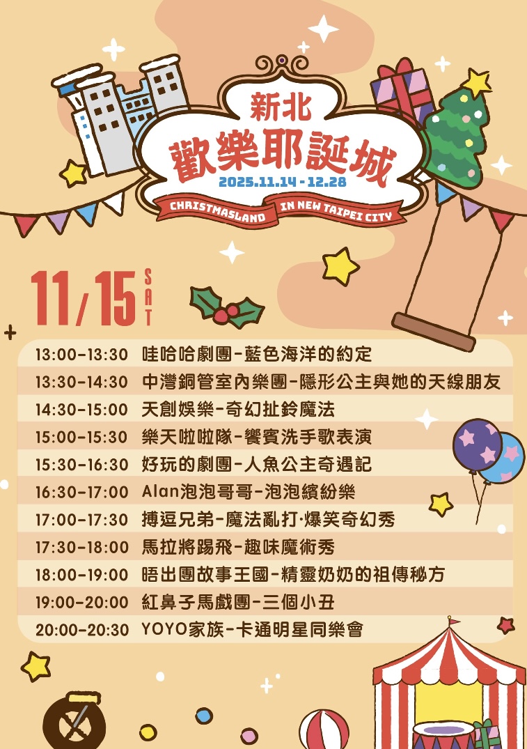 新北歡樂耶誕城開城首週亮點!童樂馬戲嘉年華雜耍特技兒童劇團演出時間公布