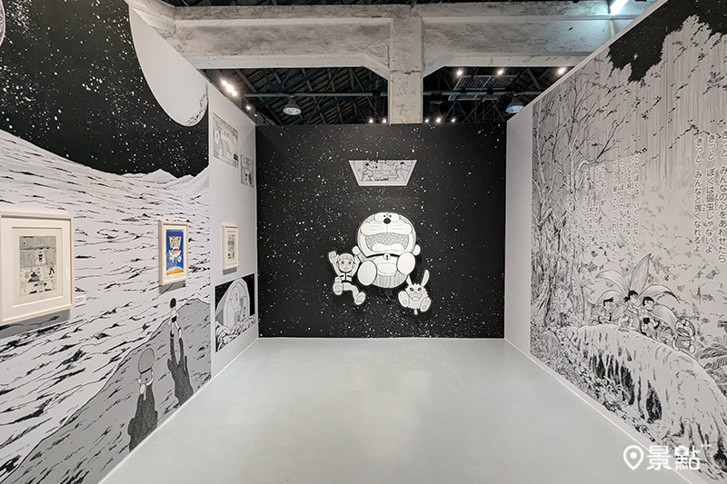 在「黑白作品展區」則展出17幅珍貴的黑白漫畫復刻原畫,其細膩筆觸記錄著藤子・F・不二雄老師不同年代的畫風演變,呈現《哆啦A夢》多樣的藝術風格。
