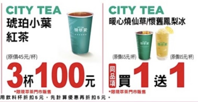 CITY TEA暖心燒仙草、懷舊鳳梨冰同品項買1送1