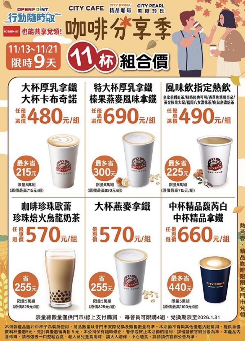 OPENPOINT行動隨時取於11/13-11/21推出CITY 咖啡分享季