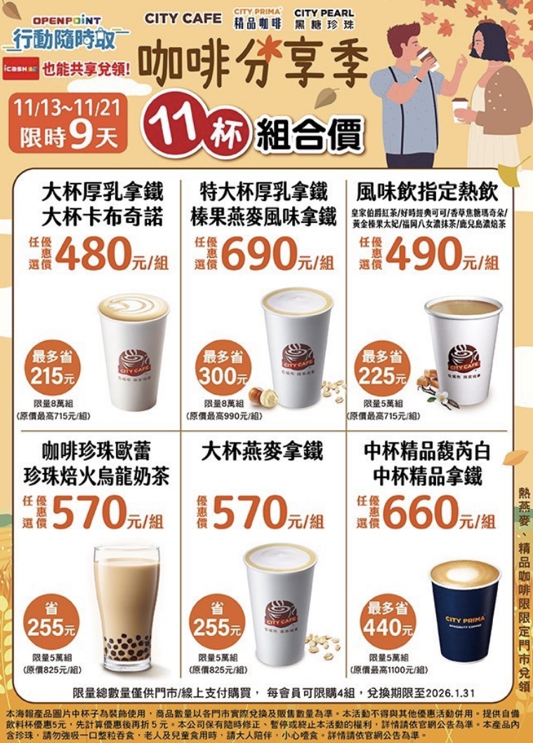 OPENPOINT行動隨時取於11/13-11/21推出CITY 咖啡分享季