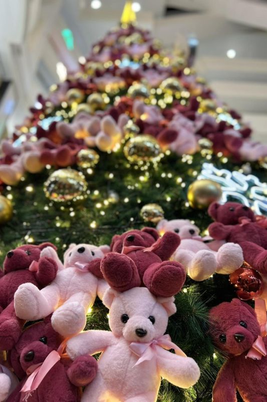 2025台茂購物中心聖誕檔期以「粉萌貝兒夢幻聖誕 Merry Pinkmas Wonderland」為主題,打造由500隻粉紅小熊所組成、高達8米的巨型聖誕樹,聖誕樹從B2延伸而上,即日起至2026年1月4日展出。