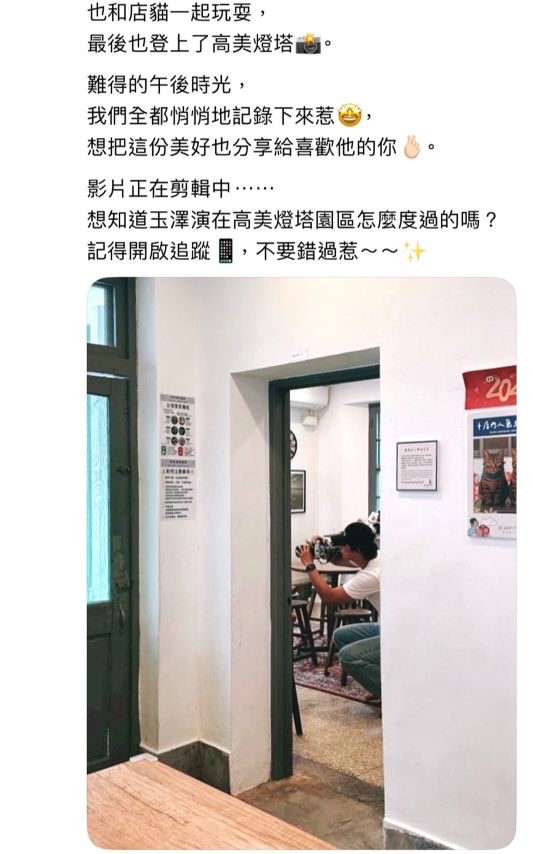 台中NPC同款景點再+1!韓國人氣男神玉澤演近期因拍攝新電影作品,將在台停留一段時間,期間可在玉澤演IG上看到許多台中打卡照,「玉澤演坐過的」公車座椅也在 Threads 上廣為流傳,被粉絲稱作「台中NPC」。近日台中咖啡廳「遇見你之前」於社群平台上分享玉澤演的驚喜現身,推薦粉絲把這裡加入同款景點清單!