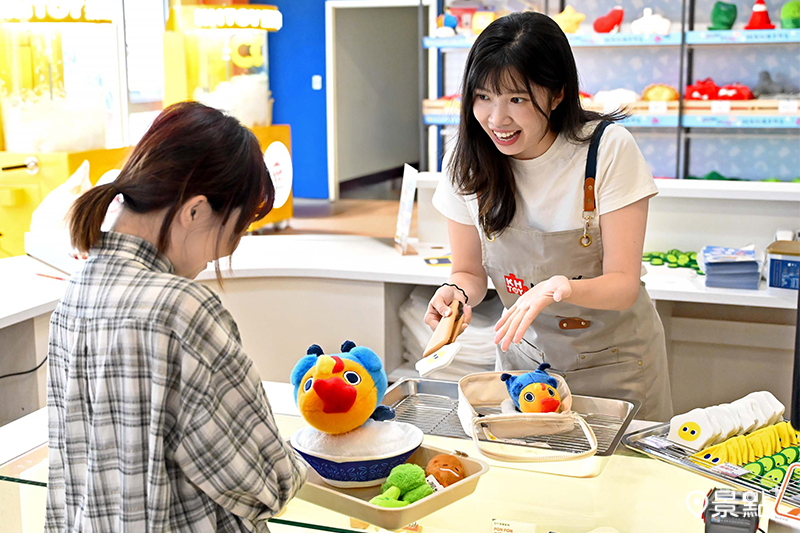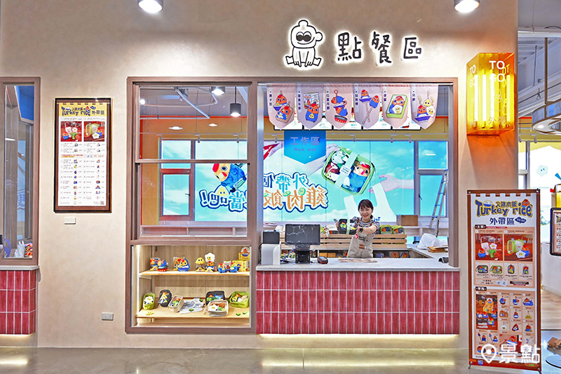 店內特別設計「內用自助餐DIY體驗區」,讓手作體驗更具臨場感。親手打造一盒屬於自己的火雞肉飯便當,搭配雞腿、花椰菜、香菇等配菜玩偶,每個細節都充滿台式溫度。