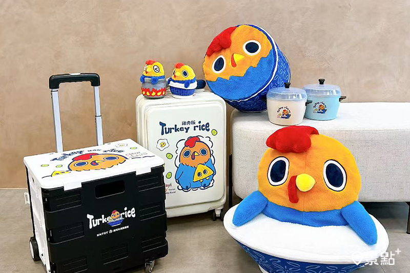 不僅外型萌度爆表,此次更推出一系列限量生活周邊,等著幸運玩家解鎖。從最大獎「20 吋雞肉飯前開式行李箱」、雞肉飯玩偶毯、摺疊購物車、絨毛椅凳,到可愛電鍋碗與槌槌棒,全系列皆為 KHTOY 獨家火雞肉飯商品,活動期間打卡還可抽限量行李箱、摺疊購物車等好禮。