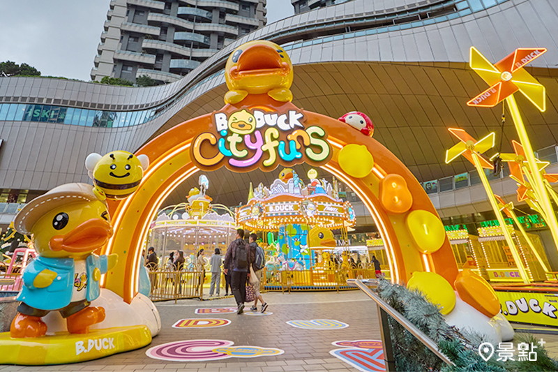 「B.Duck城市樂園」打造300坪遊樂場,園區內設有六大遊樂設施及四大互動遊戲攤位,包含浪漫巴黎、風車蹦床、牛仔很忙、環球之旅、浴室大作戰與搖搖樂鞦韆,盡情感受騰空跳躍的暢快瞬間,或在微風吹拂中享受恣意放鬆的軌道列車,同時還能挑戰打氣球、擲骰子、丟沙包等樂趣小遊戲,考驗反應力與手眼協調,增添更多驚喜與成就感。