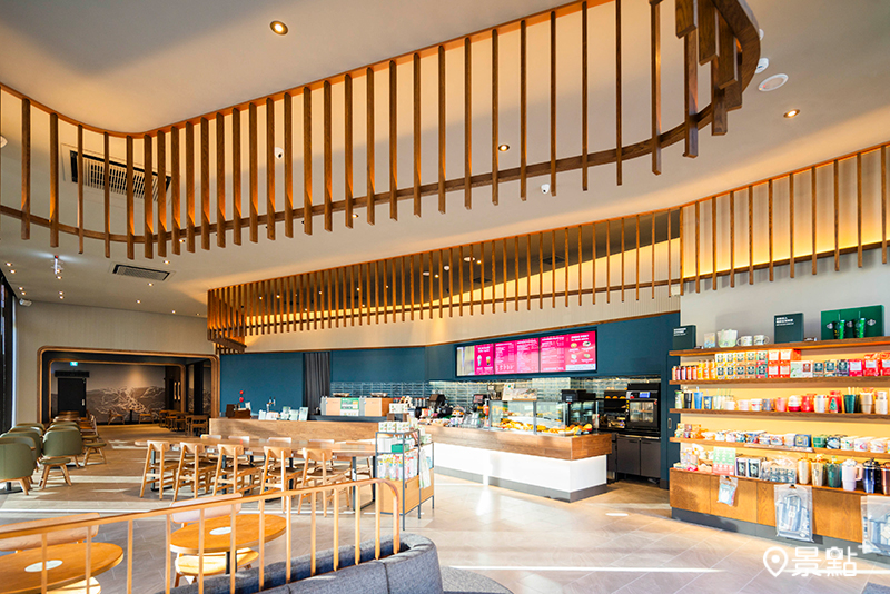 靈感源自咖啡原產地的山脈線條,傾斜的造型象徵咖啡的能量與生命力,與周圍客席區形成對比又和諧的空間,讓消費者在靜謐細緻的氛圍中,享受悠閒時光。