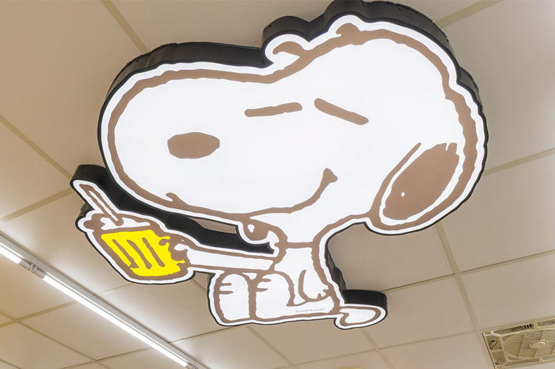 其中最吸睛的亮點莫過於「巨大史努比天花板造型燈箱」,可愛到讓人忍不住抬頭拍照,是粉絲到店必拍的打卡點。