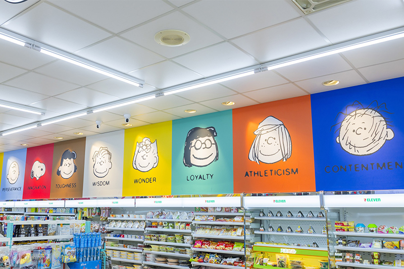 走進店內,不論是用餐區、餐檯、天花板到商品陳列,都以花生漫畫元素打造主題化空間,整體氛圍更明亮、舒適,也變得超級好拍。