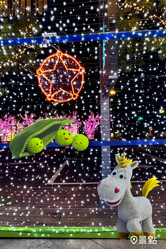 走進這座西部風格的驛站,經典角色「牛仔胡迪」熱情迎接民眾到來。燈飾結合耶誕元素與美式懷舊設計,營造出溫暖而充滿童趣的氛圍,成為遊客拍照打卡的必訪第一站。別忘了向胡迪問聲:「Woody, Partner!」開啟專屬於《玩具總動員》世界的冒險旅程。