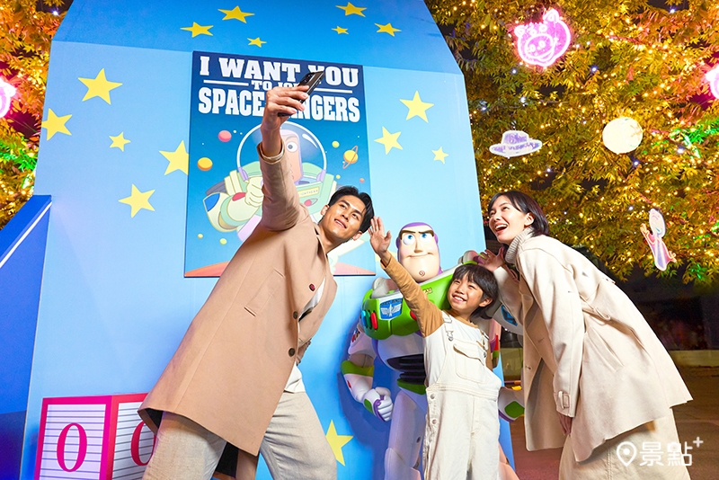 漫步在台北101四周的閃耀星光步道,展開一段奇幻旅程。在光影交織的節慶氛圍中,《玩具總動員》經典角色們悄然登場──三眼怪的奇幻光彩、胡迪牛仔帽的冒險氣息、象徵無限宇宙的星球,以及充滿童趣與創意的叉奇,串聯出整條星光大道。