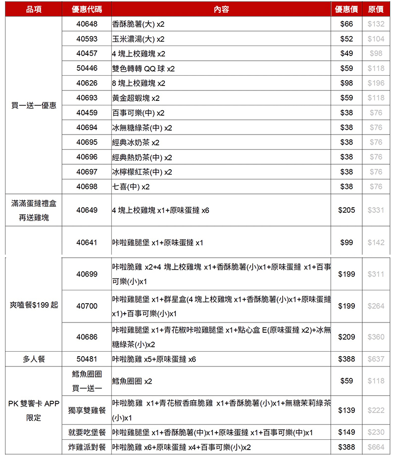 12月限定優惠盡在「PK 雙饗卡 APP」!自 12月2日至12月15日,只要透過 PK APP 訂餐並參與小遊戲,即可抽出專屬優惠券,多項人氣組合輕鬆帶回家,肯德基美味一鍵入手毫不費力。此外,PK雙饗卡 APP 更推出超值 12 元神券、整月闖關抽 iPhone 17、100% 中獎率的 45 折優惠券,以及多款買一送一回饋,優惠力道全面拉滿。會員還可享筆筆消費最高 2.5% 回饋,新加入即可獲得 $50 入會禮與 $100 生日禮,折抵無上限。